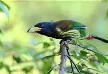 黑眉拟啄木鸟,为须䴕科、拟啄木鸟属的小型鸟类,体长20-25厘米,外形和金喉拟啄木鸟非常相似,但具粗著的黑色眉纹,头侧和耳覆羽以及下喉蓝色而不为银灰色,前颈两侧各有一块鲜红色斑。全部>>