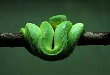 绿树蟒是爬行纲有鳞目蟒科树蟒属的脊索动物。绿树蟒,身体粗壮,头部和颈部区分明显;头部鳞片细小,粒状,热感应窝主要在吻鳞、上唇鳞前方和下唇鳞下方等位置;身体颜色变化较大,…全部>>