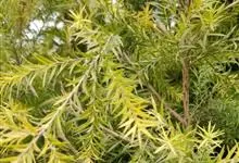 黄金串钱柳是桃金娘科白千层属常绿乔木植物。其树干暗灰色,树皮不易剥落;具油腺点,香味浓郁;叶革质互生,披针形或狭长圆形,两端尖;叶色全年金黄至鹅黄色;枝条细长,柔软且韧性好;穗状花序生于枝顶;花白色,…全部>>
