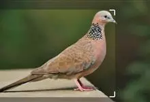 珠颈斑鸠,别名花斑鸠、珍珠鸠、花脖斑鸠、鸪鹪,是鸠鸽科副斑鸠属鸟类。体型中等,体长27~34cm,体重120~205g,雌鸟和雄鸟羽色相似,但雌鸟不如雄鸟羽色亮泽。珠颈斑鸠前额至头顶羽色稍淡,…全部>>