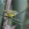 黑脸鹟莺:体长10厘米,是有特色的体小而多彩的莺鸟。粗眉纹,颏、喉及尾下覆羽黄色,脸罩黑,头顶及颈背灰色,上体绿,无翼纹,腹白。虹膜褐色;上嘴色深,下嘴肉色;脚偏绿色。…全部>>