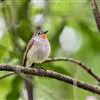 红喉姬鹟小型鸟类,体长11~13厘米。雄鸟上体灰黄褐色,眼先、眼周白色,尾上覆羽和中央尾羽黑褐色,外侧尾羽褐色,基部白色。颏、喉繁殖期间橙红色,胸淡灰色,其余下体白色,非繁殖期颏、喉变为白色。…全部>>