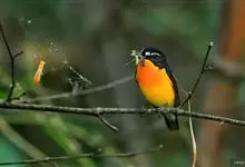 棕胸蓝姬鹟:属小型鸣禽,体长10-13厘米,体重6-10克,是一种体型很小的灰蓝及棕色鹟,雌雄羽色不同,雄鸟羽色艳丽,雌鸟羽色暗淡。雄鸟上体深蓝色,胸橙黄色,下腹灰白色。亚成鸟具褐色斑驳。…全部>>
