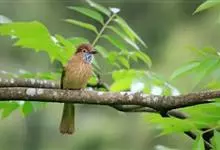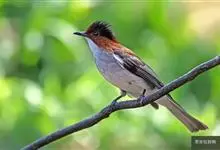 栗背短脚鹎,体长18-22厘米。上体栗褐,头顶和羽冠黑色。背栗色、翅和尾暗褐色具白色或灰白色羽缘。颏、喉白色,胸和两胁灰白色,腹中央和尾下覆羽白色。…全部>>