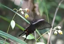 美凤蝶又名多型蓝凤蝶、大凤蝶,是鳞目凤蝶科凤蝶属动物。美凤蝶雄蝶无尾突,翅黑色,正面各翅室中部有深色条纹,分布蓝色鳞片,反面前后翅基部有红斑,后翅臀角有环状红斑。雌蝶具多型,前翅浅灰色,外缘和翅脉黑色,…全部>>