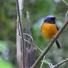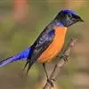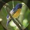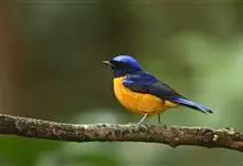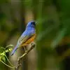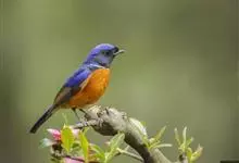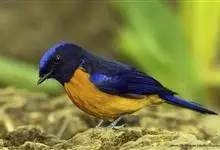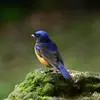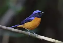 棕腹大仙鹟:体重24-28克,体长15-17厘米,是一种小型的色彩亮丽的鹟。雄鸟上体深蓝,下体棕色,脸黑,额、颈侧小块斑、翼角及腰部亮丽闪辉蓝色。与棕腹仙鹟易混淆,区别在色彩较暗。雌鸟灰褐,…全部>>