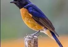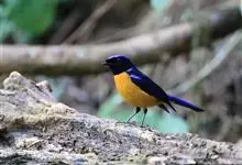 棕腹大仙鹟:体重24-28克,体长15-17厘米,是一种小型的色彩亮丽的鹟。雄鸟上体深蓝,下体棕色,脸黑,额、颈侧小块斑、翼角及腰部亮丽闪辉蓝色。与棕腹仙鹟易混淆,区别在色彩较暗。雌鸟灰褐,…全部>>