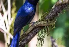 大仙鹟:体重34-38克,体长20-2厘米。是一种体型较大的深色鹟。雄鸟上体蓝色,头顶、颈侧条纹、肩块及腰部辉蓝,下体黑色。雌鸟橄榄褐色,头顶蓝灰,颈侧具闪辉浅蓝色块,喉具皮黄色三角形块斑。…全部>>