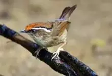 褐胁雀鹛,是莺科、雀鹛属的鸟类。褐胁雀鹛是小型鸟类,体长13-15厘米。头顶棕褐色,黑色侧冠纹和宽阔的白色眉纹,眼先黑色。上体包括两翅和尾橄榄褐色。颏、喉、胸、腹白色,腹和胸沾皮黄色,两胁橄榄褐色,…全部>>