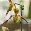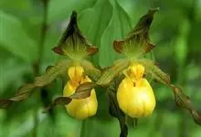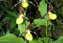 黄花杓兰:植株通常高30-50厘米,具粗短的根状茎。茎直立,密被短柔毛,基部具数枚鞘,鞘上方具3-6枚叶。叶片椭圆形至椭圆状披针形。花序顶生,通常具1花,罕有2花;花黄色,有时有红色晕,…全部>>