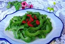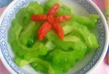 炒苦瓜以苦瓜主料制作的药膳。菜爪苦肉 香,咸鲜苦凉,苦中有鲜味,能刺激人体唾液和胃液分泌,…全部>>