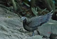 灰孔雀雉:雄鸟体长50-67厘米,体重456-710克;雌鸟体长33-52厘米,体重460-500克。雄鸟全身羽毛黑褐色,…全部>>