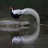 白鹇,是鸡形目雉科鹇属的一种留鸟。雄鸟上体白色并具黑色纹,下体黑色,头顶具黑色长羽冠,尾白而长;雌鸟体型较小,以橄榄褐色为主,下体具白色或皮黄色细纹;虹膜褐色,眼周具红色裸皮,喙黄色,脚鲜红色。…全部>>