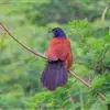 褐翅鸦鹃,是鹃形目鸦鹃科鸦鹃属的鸟类。褐翅鸦鹃的身体为黑色;头颈和胸带蓝紫色金属光泽并具黑亮的羽干纹,下胸至腹部泛金属绿光泽;两翼和肩部为棕栗色,外侧飞羽具暗色羽端,尾羽闪铜绿色光泽;虹膜赤红色,…全部>>