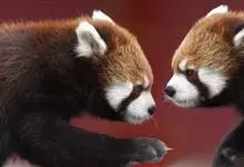 小熊猫:是小熊猫科、小熊猫属的一种动物。雌雄相似,不存在二态性。外形像猫,但较猫肥大,全身红褐色。圆脸,吻部较短,脸颊有白色斑纹。耳大,直立向前。四肢粗短,为黑褐色。尾长、较粗而蓬松,…全部>>
