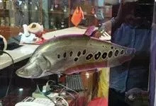 香鱼体狭长而侧扁,头小而吻尖,口大眼小。背缘苍黑,两侧及腹部为白色。尾分叉,无硬棘,背鳍后有一小脂鳍。鲜活时各鳍淡黄色,腹鳍的上方有一处黄色色斑。香鱼吻端下弯,形成钩吻。下颌前端各有一突起,两突起之…全部>>