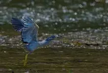 美洲绿鹭共有5个亚种。体长约48厘米,翼展62-70厘米,体重240克。头顶和枕部冠羽具辉墨绿色。眼下方有一黑色条纹延达颈侧。颈及背部蓑羽灰色。翼和尾黑色,翅缘白色。翼上及羽绿色,羽缘白色。…全部>>