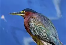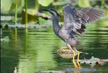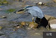 绿鹭:是鹳形目鹭科绿鹭属鸟类。体型小,头顶黑,枕冠亦黑色,上体蝉灰绿色,下体两侧银灰色;前额至后枕及冠羽墨绿色,眼后有一白斑,颊纹黑色;颚纹白色,后颈、颈侧和体侧烟灰色;背部披灰绿色矛状长羽,…全部>>