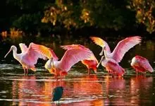 琵鹭,为6种长腿涉禽的统称。主要以虾、蟹、水生昆虫、昆虫幼虫、蠕虫、甲壳类、软体动物、蛙、蝌蚪、蜥蜴、小鱼等小型脊椎动物和无脊椎动物为食,偶尔也吃少量植物性食物。…全部>>