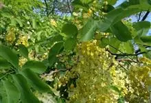 腊肠树:是豆科腊肠树属植物。落叶乔木,高可达15米;枝细长;树皮灰色,老时粗糙,暗褐色。叶长30-40厘米,小叶对生,薄革质,阔卵形,卵形或长圆形,边全缘,幼嫩时两面被微柔毛,老时无毛;叶脉纤细,…全部>>