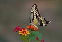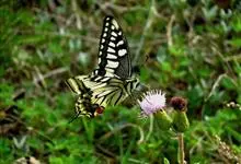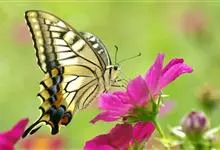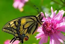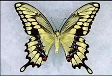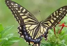 金凤蝶,是鳞翅目凤蝶科凤蝶属动物。金凤蝶为中型凤蝶,翅展70-84毫米,翅背面底色黑褐色,翅脉黑色,翅室具黄斑;前翅背面基部呈暗黄色,亚外缘为黑色,内具一列小黄斑;后翅背面亚外缘区具黑宽边,…全部>>
