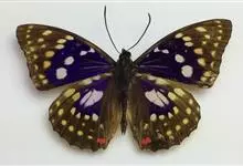 大紫蛱蝶为大型蝶种,翅展约86~110mm。翅紫黑色,有白色斑点点缀其中,雄蝶的翅具强烈紫色虹彩,其余部分暗褐色,后翅臀角具粉色斑。雌蝶体型较大,但是没有蓝紫金属光泽。原产于东亚的蝶类。…全部>>