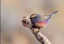 花彩雀莺:体长9-12厘米,是一种毛茸茸偏紫色的雀莺。顶冠棕色,眉纹白。尾长,羽毛松软。前额有一宽阔的眉纹淡黄色,头顶栗色或棕红色,有的具紫蓝色光泽。背灰色,腰和尾上覆羽辉紫蓝色,飞羽灰褐色。…全部>>