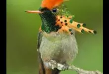 缨冠蜂鸟是世界上体型最小的蜂鸟之一,体长仅6.6厘米,重约2.3克。背部铜绿色,额及下体绿色。臀部具白色条纹,飞行时尤显。缨冠蜂鸟的红褐色冠羽呈火炬状,不算长,非常醒目。冠羽与脸颊突起的橙色或红色的…全部>>