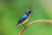 黄腹啄花鸟:体重11-16克,体长104-117毫米。是一种体型大,下腹部为艳黄色的啄花鸟,雄鸟特征为头黑色,喉部有白色纵斑、喉侧及上体成对比,两翅和尾黑色,外侧尾羽内翈具白色斑块。其余下体淡黄色。…全部>>
