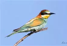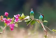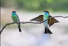 蓝颊蜂虎:是蜂虎科、蜂虎属的鸟类,共有2个亚种。体长27-33厘米,翼展46-49厘米,体重38-50克。嘴形细长而下弯,先端尖,…全部>>