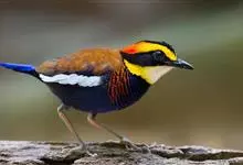 蓝喉蜂是蜂虎科蜂虎属鸟类。体长26-28厘米,嘴长而弯曲,有明显细长的中央尾羽。头部、颈部和背部为巧克力色,有黑色眼纹。喉部、腰部和尾羽为蓝色。腹部和两翼为绿色。幼鸟外观似成鸟,头部、颈部和背部为绿色,…全部>>