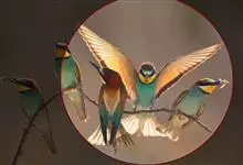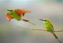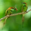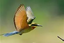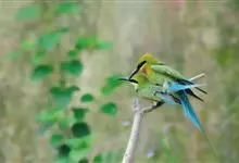 蓝颊蜂虎:是蜂虎科、蜂虎属的鸟类,共有2个亚种。体长27-33厘米,翼展46-49厘米,体重38-50克。嘴形细长而下弯,先端尖,…全部>>