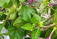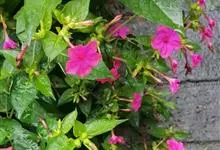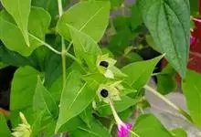 即紫茉莉,英文名:Four-o'clock,Marvel of Peru,为紫茉莉科、紫茉莉属多年生草本植物,一年生栽培。株高50~80cm。根粗壮,茎多分枝而散生。叶对生,卵形或心脏形。花数朵簇生…全部>>