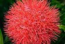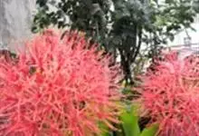 网球花是石蒜科,网球花属多年生草本植物。鳞茎球形,叶片长圆形,叶柄短,鞘状。花茎直立,实心,高可达90厘米,先叶抽出,淡绿色或有红斑;伞形花序具多花,花红色;花被管圆筒状,花被裂片线形,花丝红色,…全部>>