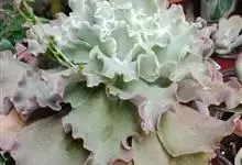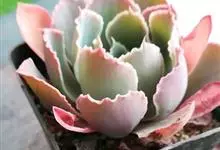女王花笠,又名扇贝石莲花、女王花舞笠,是景天科拟石莲花属的多肉植物。由美国加利福尼亚州的育种师Dick Wright于1964年培育。特征是呈大波浪状褶皱的红色叶缘和气质高贵的粉紫色调。…全部>>