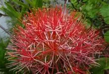 网球花是石蒜科,网球花属多年生草本植物。鳞茎球形,叶片长圆形,叶柄短,鞘状。花茎直立,实心,高可达90厘米,先叶抽出,淡绿色或有红斑;伞形花序具多花,花红色;花被管圆筒状,花被裂片线形,花丝红色,…全部>>