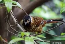 眼纹噪鹛为画眉科噪鹛属的鸟类。中型鸟类,体长30-34厘米。头、颈黑色,脸、眉纹和颏茶黄色,上体棕褐色满杂以白色、黑色和皮黄色斑点,飞羽具白色端斑,尾具白色端斑和黑色亚端斑。喉黑色,胸棕黄色具黑色横斑。…全部>>