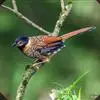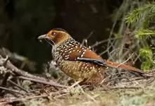 眼纹噪鹛为画眉科噪鹛属的鸟类。中型鸟类,体长30-34厘米。头、颈黑色,脸、眉纹和颏茶黄色,上体棕褐色满杂以白色、黑色和皮黄色斑点,飞羽具白色端斑,尾具白色端斑和黑色亚端斑。喉黑色,胸棕黄色具黑色横斑。…全部>>