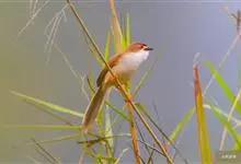 金眼鹛雀是莺科、鹛雀属小型鸟类。体长16-20厘米。头顶和上体棕褐色,两翅表面肉桂红色,尾褐色具明暗相间横斑。眼周金黄色,眼先、眼上、眼下、颊以及颏、喉和上胸概为白色,其余下体茶黄色,脚橙黄色。…全部>>