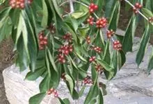 朱砂根是报春花科紫金牛属植物,又名铁凉伞、红铜盘、百两金、大罗伞、开喉箭等,为常绿小灌木,高1~2米,茎粗壮,无毛,除侧生特殊花枝外,无分枝,叶片革质或坚纸质,椭圆形、椭圆状披针形至倒披针形,…全部>>