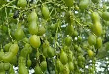 槐 Schott),豆科槐属的落叶乔木。树皮暗灰色,树冠球形,老时则呈扁球形或倒卵形。枝叶密生,羽状复叶。圆锥花序顶生,花蝶形,夏季开黄白色花,略具芳香。荚果肉质,念珠状不开裂,黄绿色,常悬垂树梢,…全部>>