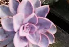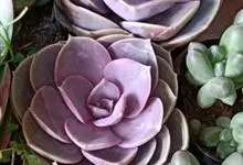 紫珍珠是景天科石莲花属的多年生肉质草本植物。植株中小型;叶片肉质,匙形,呈莲座状紧密排列;叶片粉紫色,叶缘呈粉白色,光照充足时颜色亮丽,不足时叶色会呈现深绿色或灰绿色,叶面光滑,被轻微白粉,…全部>>