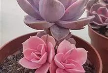 紫珍珠是景天科石莲花属的多年生肉质草本植物。植株中小型;叶片肉质,匙形,呈莲座状紧密排列;叶片粉紫色,叶缘呈粉白色,光照充足时颜色亮丽,不足时叶色会呈现深绿色或灰绿色,叶面光滑,被轻微白粉,…全部>>