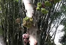 聚果榕是桑科榕属植物,乔木,高达25-30米,胸径60-90厘米,树皮灰褐色。叶薄革质,椭圆状倒卵形至椭圆形或长椭圆形,长10-14厘米,宽3.5-4.5厘米。榕果聚生于老茎瘤状短枝上,…全部>>