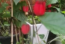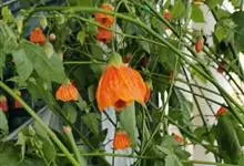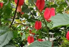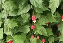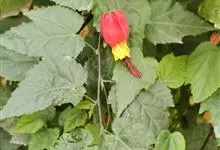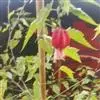 红萼苘麻是锦葵科、苘麻属常绿软木质灌木,叶绿色,长5-10厘米,心形,叶端尖,叶缘有钝锯齿,有时分裂,有细细的叶柄;叶互生,掌状叶脉;花单生于叶腋,具长梗,下垂;花萼红色,半套着大约4厘米长的花瓣,…全部>>