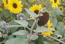 向日葵:是桔梗目、菊科、向日葵属的植物。因花序随太阳转动而得名。是一年生高大草本植物。茎粗壮,高1-3米,不分枝或有时上部分枝,被白色粗硬毛。叶互生,卵状心形或卵形,顶端急尖或渐尖,基生3出脉,…全部>>