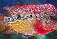 红魔鬼鱼,学名为厚唇双冠丽鱼,也叫火鹤鱼,是慈鲷科丽体鱼属下的一种观赏鱼类。血鹦鹉鱼的父本鱼种。它是自然界中体色最红的一种淡水鱼。…全部>>