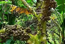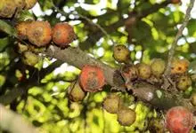 聚果榕是桑科榕属植物,乔木,高达25-30米,胸径60-90厘米,树皮灰褐色。叶薄革质,椭圆状倒卵形至椭圆形或长椭圆形,长10-14厘米,宽3.5-4.5厘米。榕果聚生于老茎瘤状短枝上,…全部>>