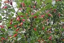 山荆子 Borkh.):为落叶乔木,树高可达4-5米,最高可达10米以上。灰褐色,光滑,不易开裂。新梢黄褐色,无毛。嫩梢绿色微带红褐。叶片椭圆形,先端渐尖,基部楔形,叶缘锯齿细锐。伞形总状花序。花白色,…全部>>