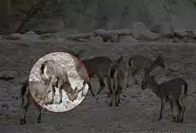 岩羊是偶蹄目牛科岩羊属哺乳动物。颜色与岩石相像,两性皆具角,雄羊角大而弯曲,角外表具不明显的横棱且体壮实,雌羊角短小;头较小,眼大,耳小,颏下无须;体背面为棕灰或石板灰色略有蓝色反光,…全部>>